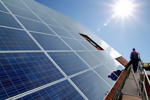 Photovoltaic devices use semiconducting materials to convert sunlight directly into electricity. Solar radiation, which is nearly constant outside the Earth's atmosphere, varies with changing atmospheric conditions (clouds and dust) and the changing position of the Earth relative to the sun.